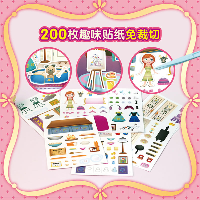6个独属场景 冰雪奇缘安静书 城堡 迪士尼 200 新款 艾莎 益智手工玩具贴纸书 雪宝 女孩 安娜 枚免裁切贴纸 赠双语音频