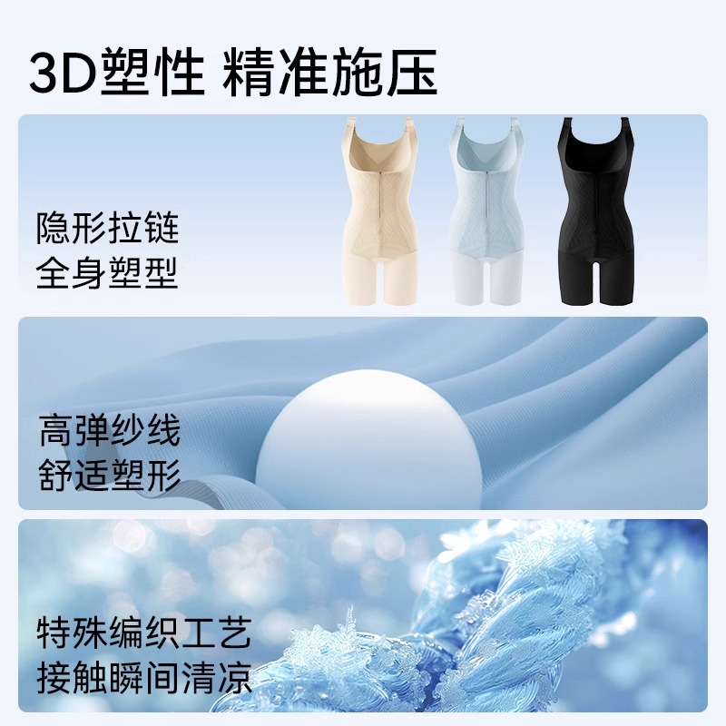 凉感塑型连身裤 婷美塑身连体衣夏季 显瘦收腹果冻衣 隐形拉链
