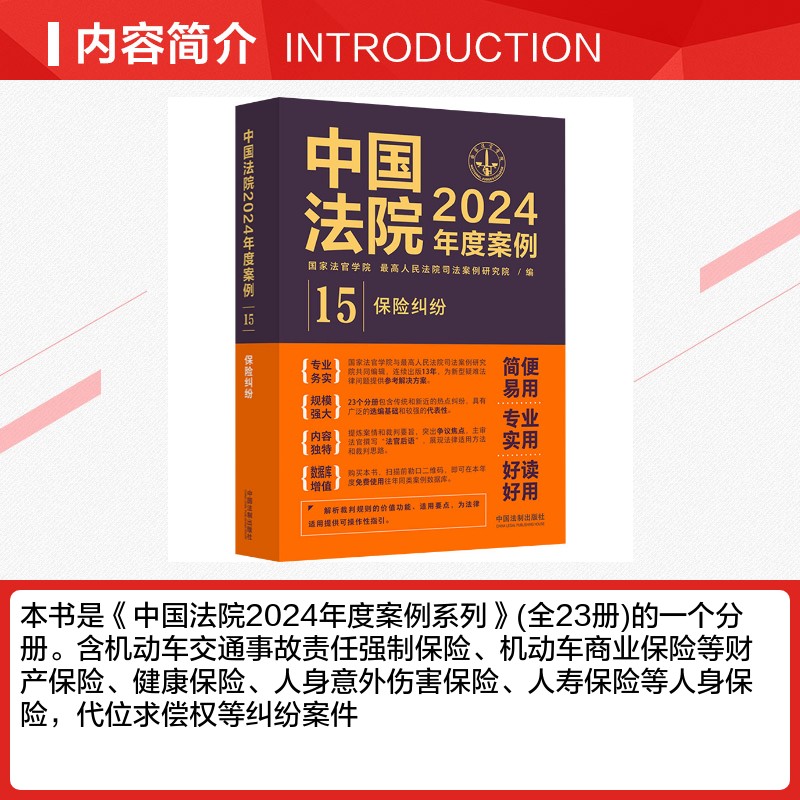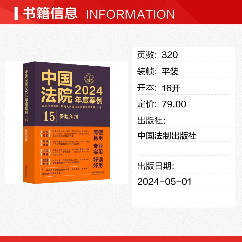 国家法官学院 最高人民法院司法案例研究院 新华书店正版 图书籍 实务解析社科 保险纠纷 司法案例 中国法院2024年度案例 编