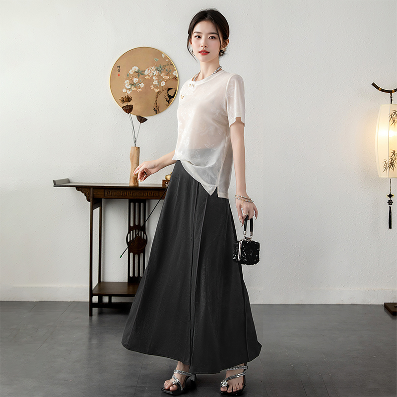 提花设计感A字中长款 一片式 裙子 半身裙女2025春夏新款 阔太新中式