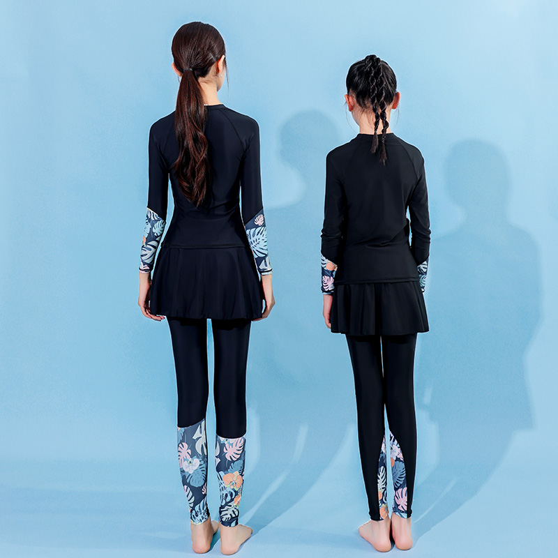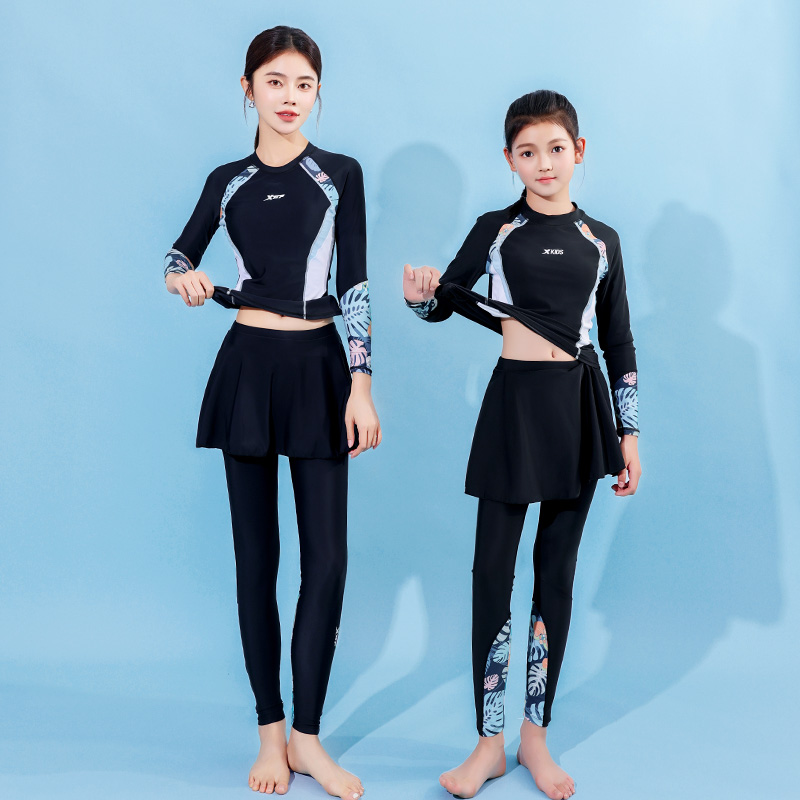 特步长袖 保守显瘦分体中大童洋气女童亲子潜水服 泳衣女2025年新款