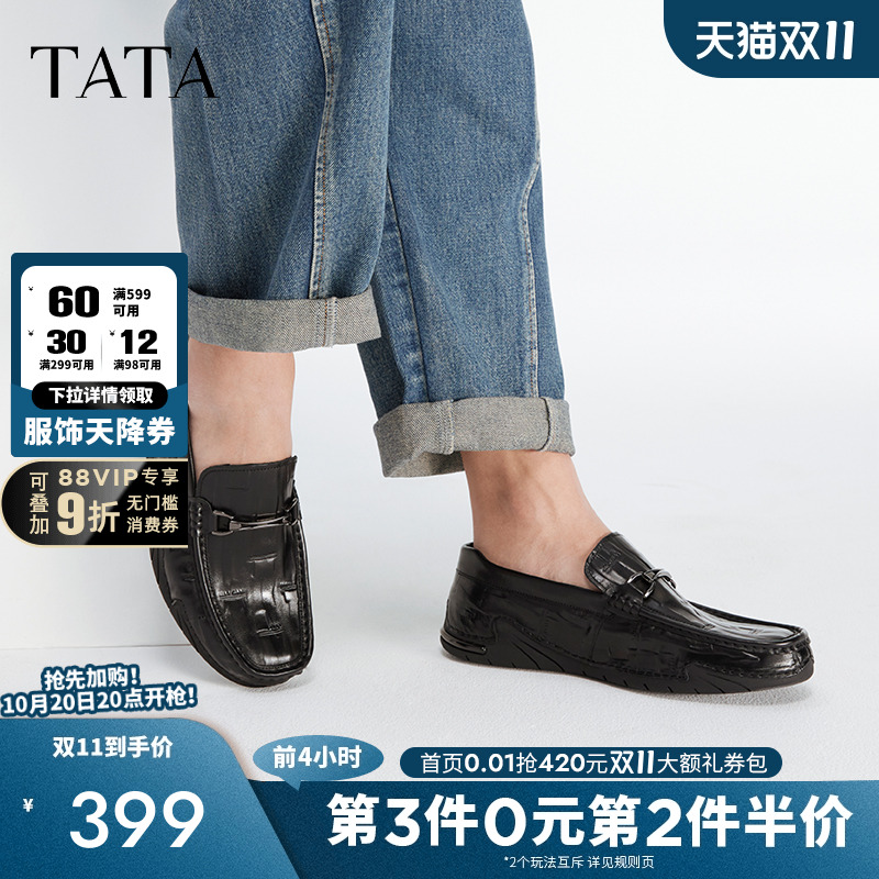 2025秋新款 Tata他她一脚蹬豆豆鞋 乐福鞋 商务休闲皮鞋 OBX03CM4 男款