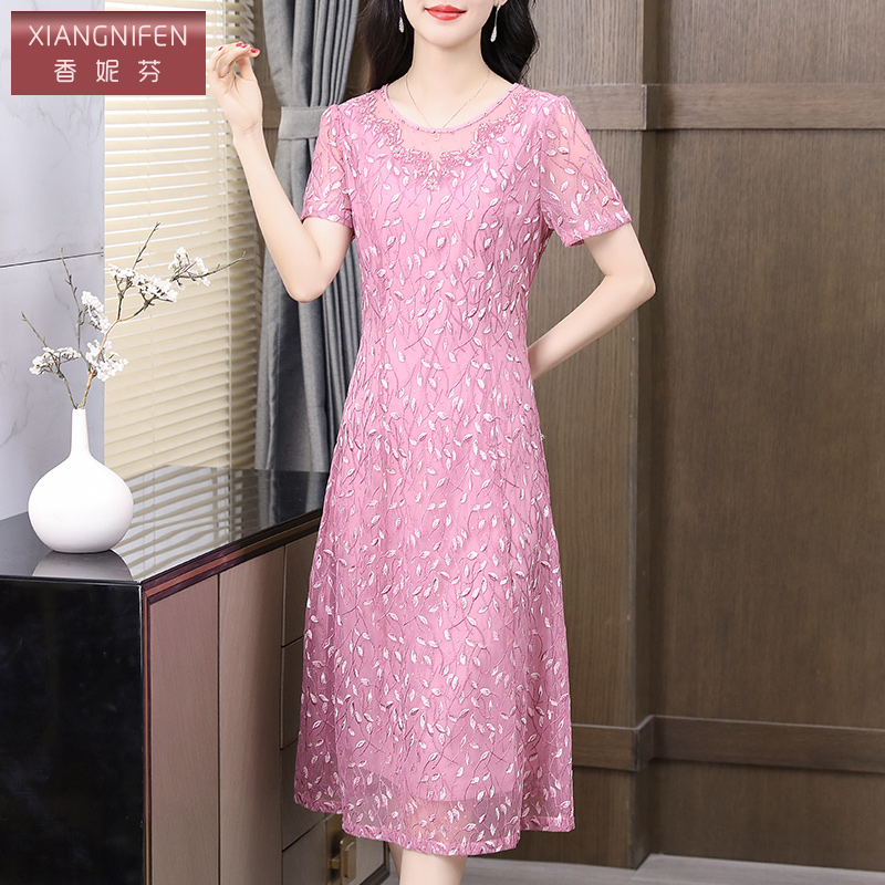 香妮芬高端精致中年妈妈温柔风气质连衣裙女2025新款 收腰裙子 夏装