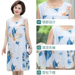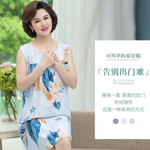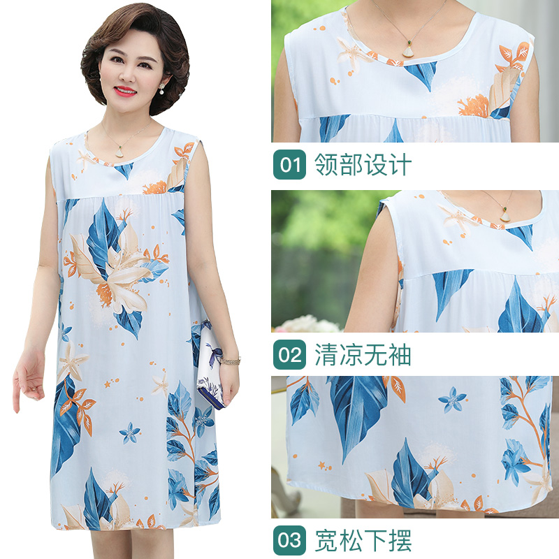 妈妈棉绸睡衣女款 夏裙子女士中老年绵绸连衣裙老年人睡裙 2025新款