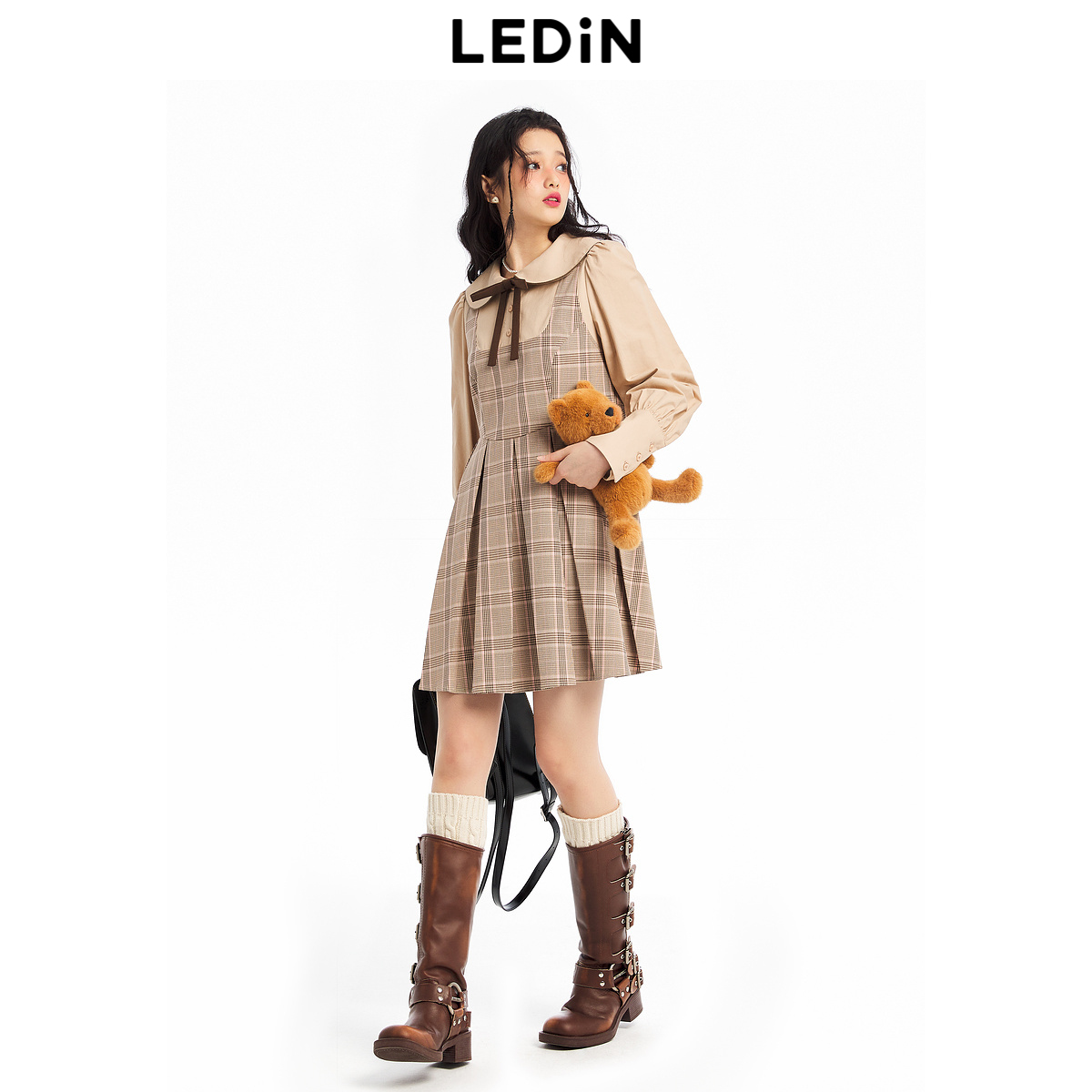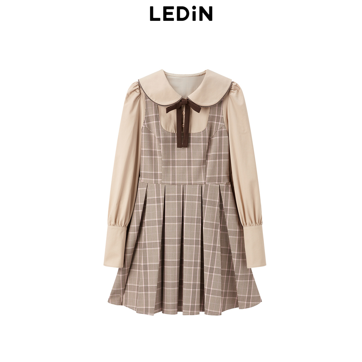 格纹连衣裙C1FAD4212 乐町甜美撞色娃娃裙秋冬新款 清仓