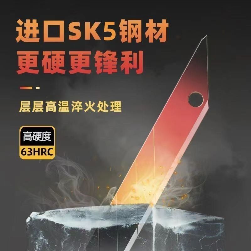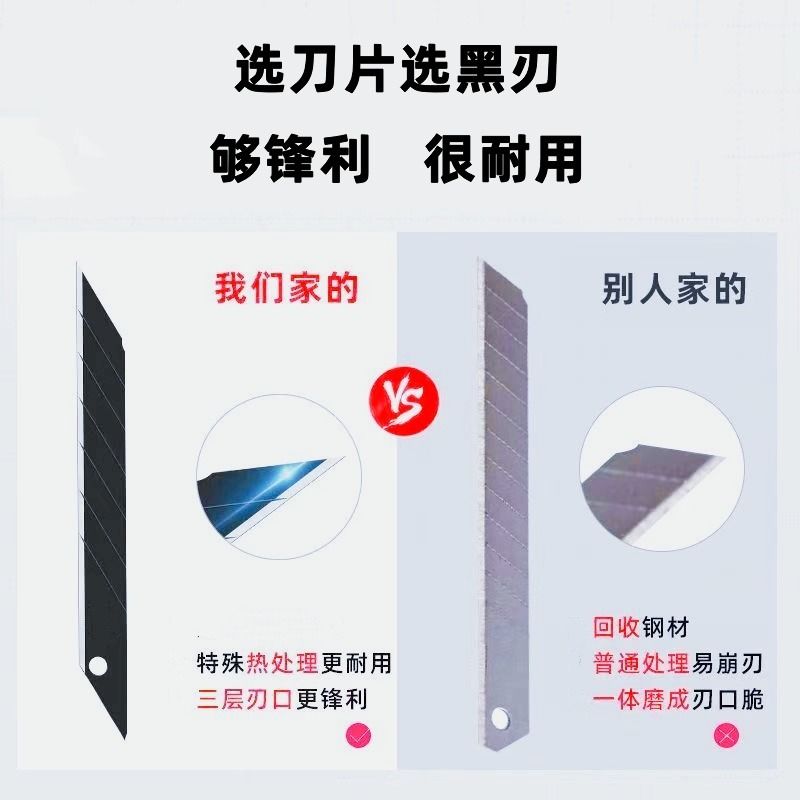 小号美工刀刀片30度尖角墙纸壁纸手机汽车贴膜专用黑刃PVC切割9mm刀片加厚型全黑大号18mm美工刀锋利黑刃刀片
