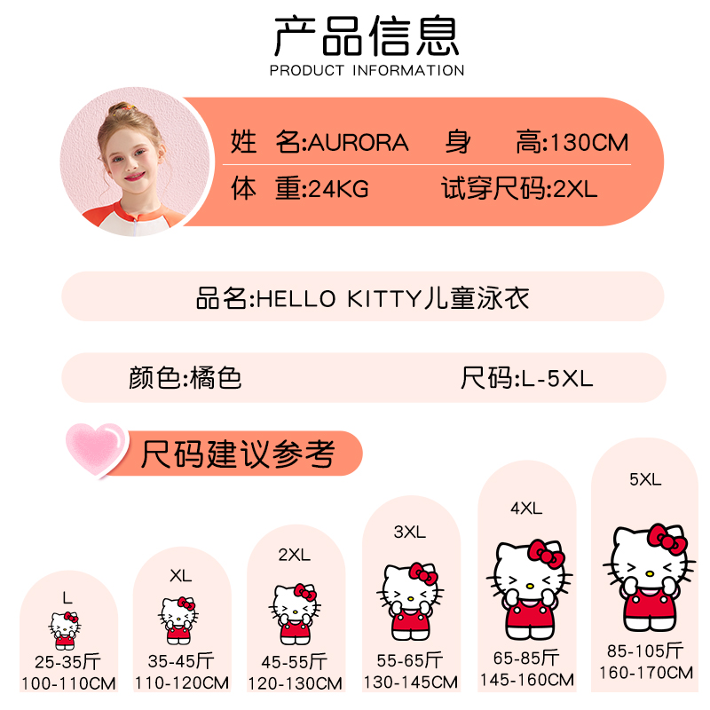 Hellokitty儿童泳衣连体防晒游泳衣2025新款 女童夏中大童女孩泳装