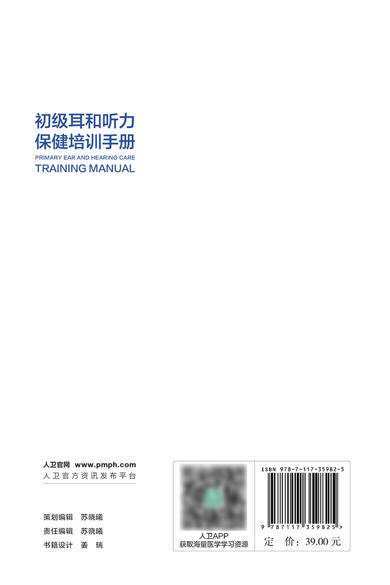人民卫生出版 初级耳和听力保健培训手册 常见耳部疾病实用指南 预防识别和管理听力损失及导致听力损失 社9787117359825 韩德民