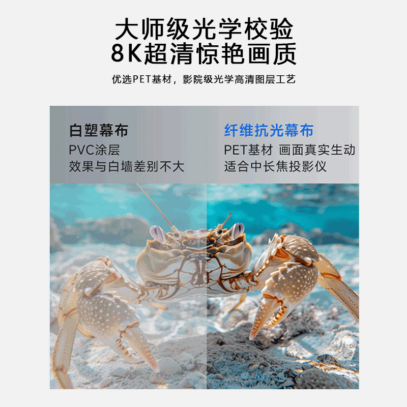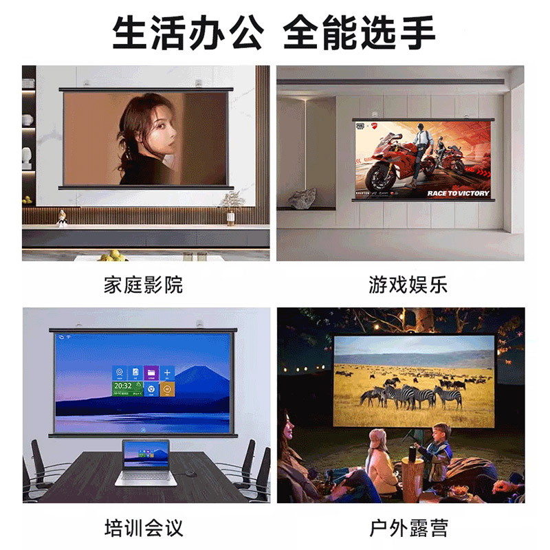俊翼抗光投影幕布家用免打孔挂墙84寸100寸120寸投影仪幕布移动便携4K高清客厅卧室办公室简易投影布幕布可3D