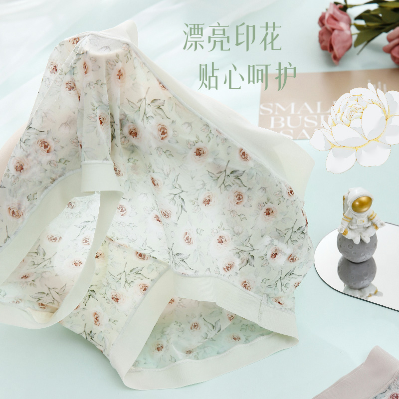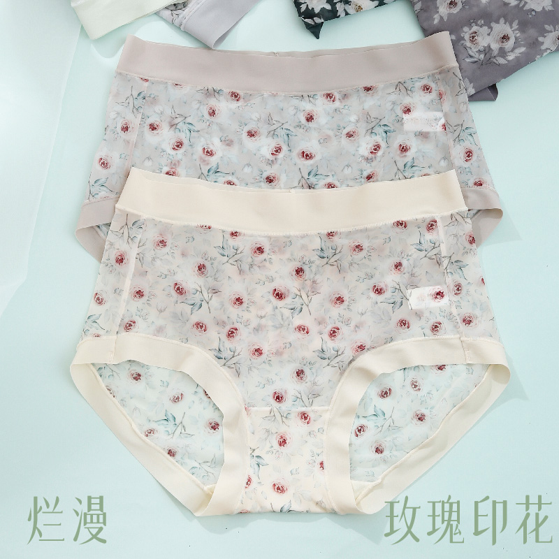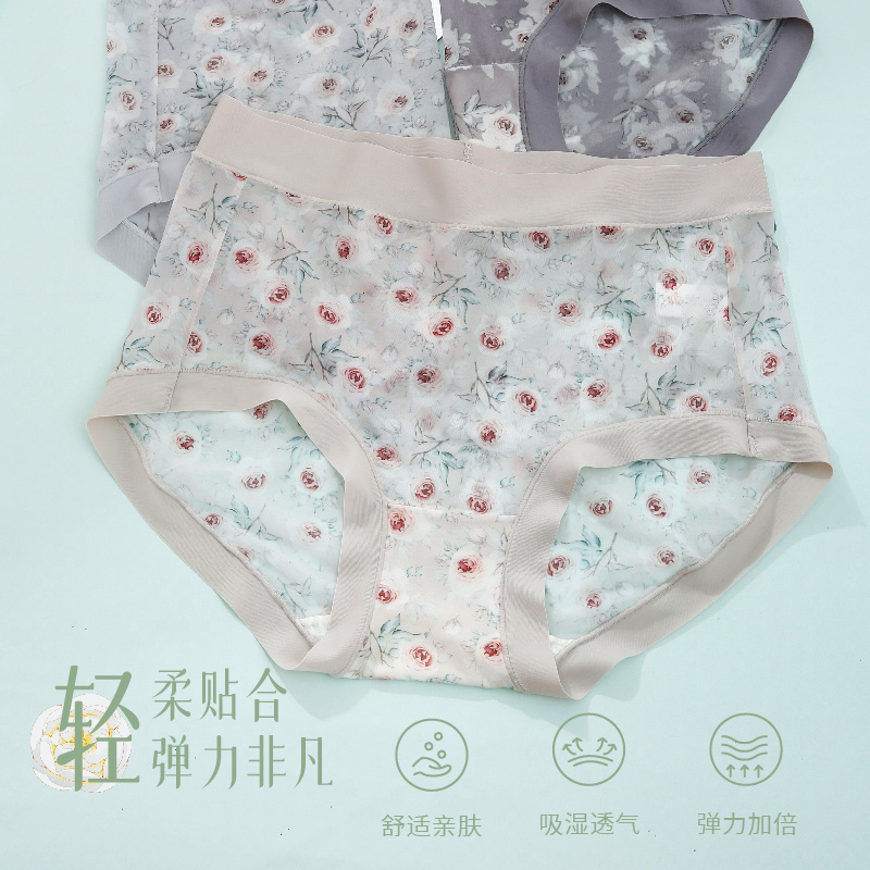 透气夏季 黛丝少女内裤 女冰丝印花图案超薄凉感速干不夹臀女三角裤