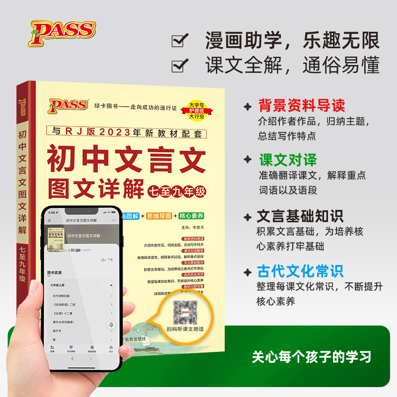 2024版 七年级八九年级初一二三中考文言文全解一本通阅读训练译文及赏析pass绿卡图书 初中文言文图文详解七至九年级统编人教版