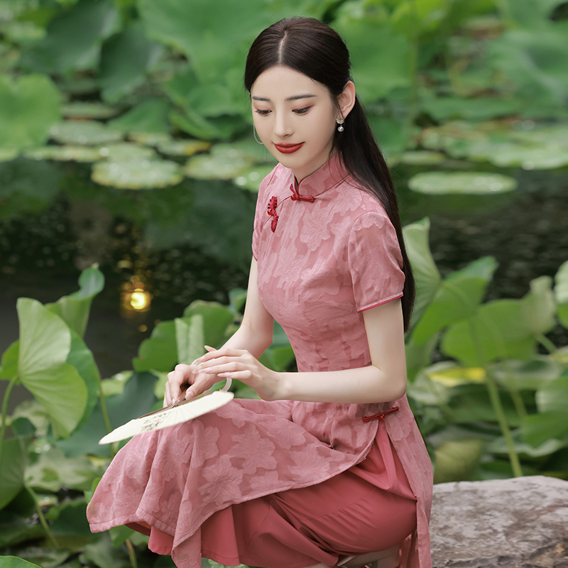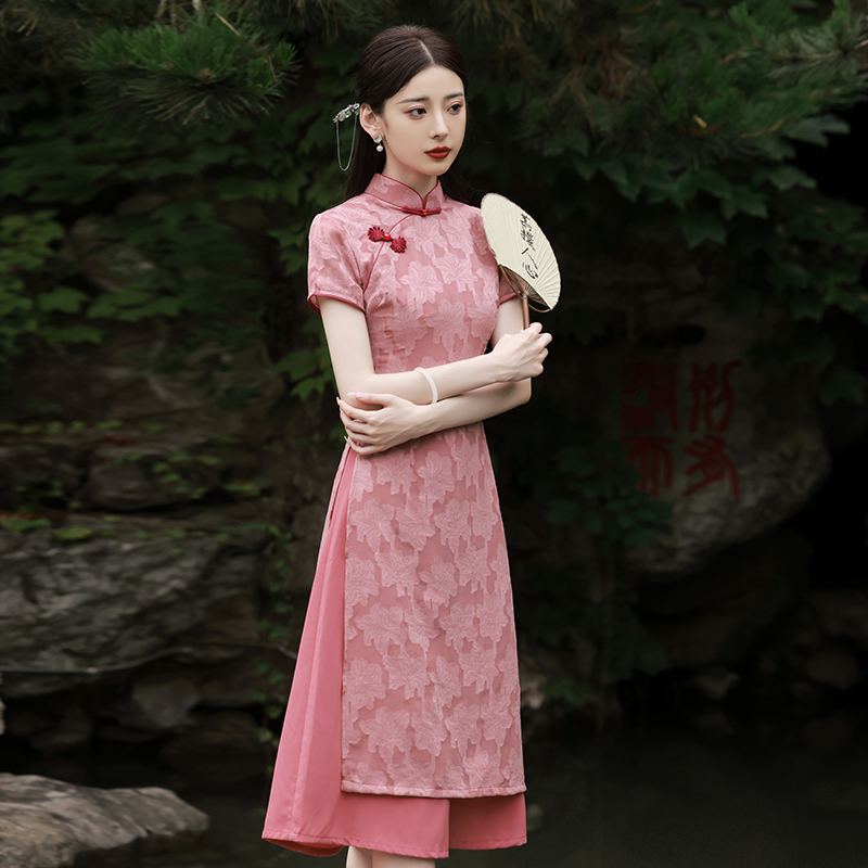 气质高级感文艺茶艺服夏季 新中式 复古国风古法奥黛旗袍2025年轻款