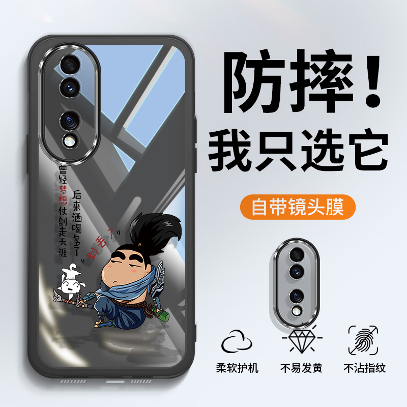 适用于荣耀90手机壳2023新款 90pro护镜壳九十pr0卡通文字硅胶软壳honor男简约潮牌9o全包防摔保护套