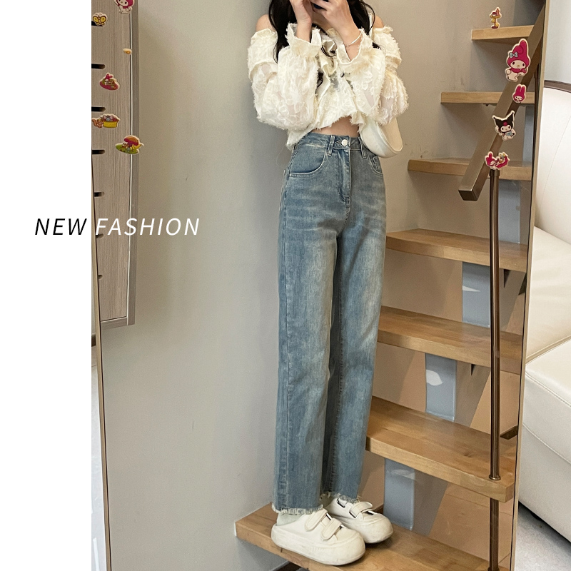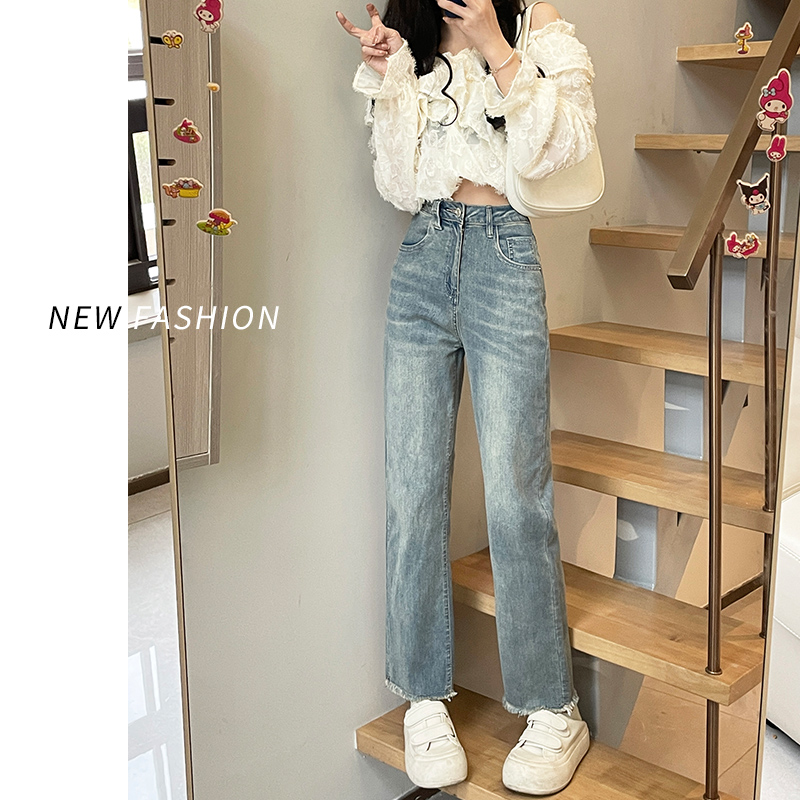 夏季 毛边直筒牛仔裤 小个子高腰九分法棍烟管裤 2025薄款 女春装