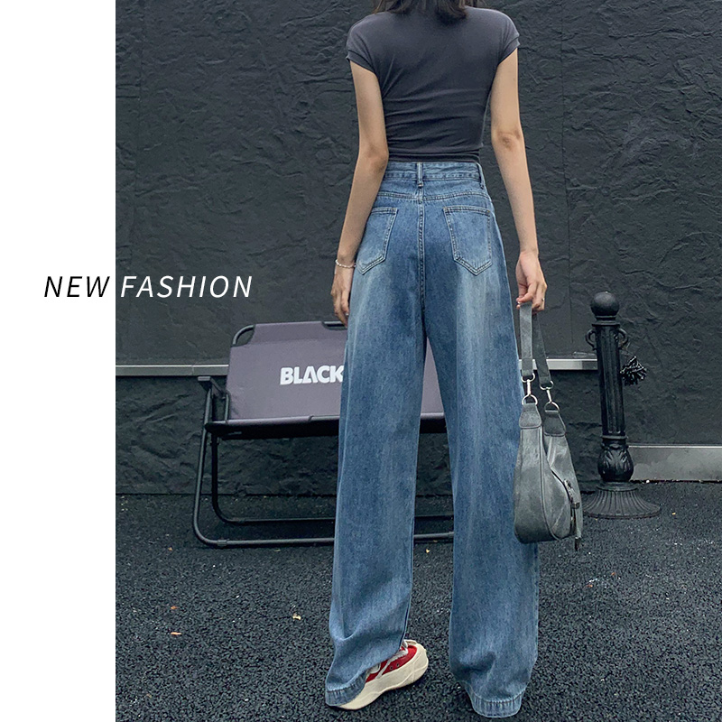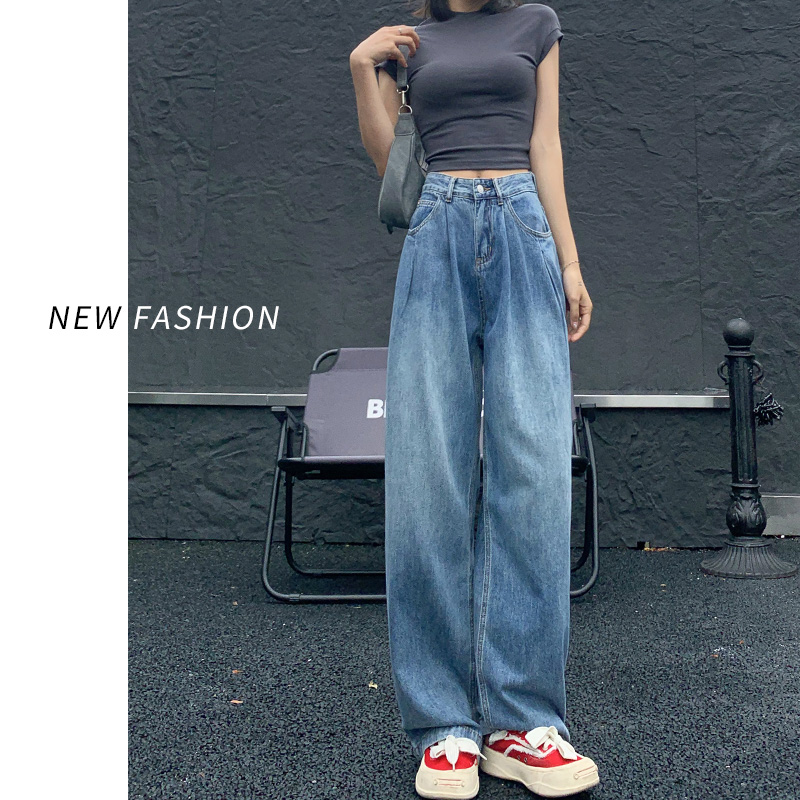 子秋冬 2025宽松垂感小个子直筒拖地裤 复古慵懒风阔腿牛仔裤 女秋季