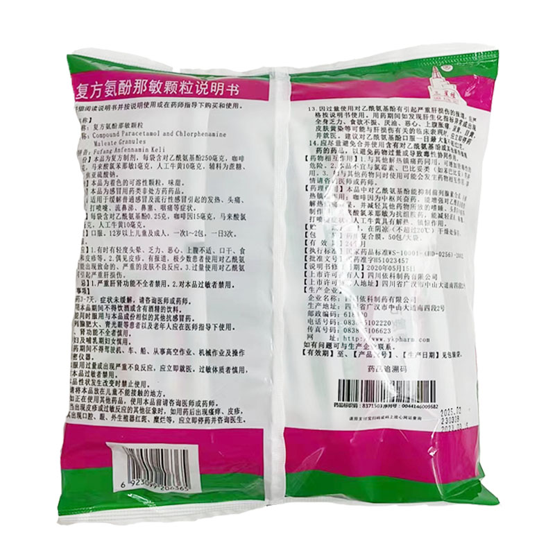 头痛鼻塞发热咽痛流鼻涕 蜀中 包 50袋 复方氨酚那敏颗粒
