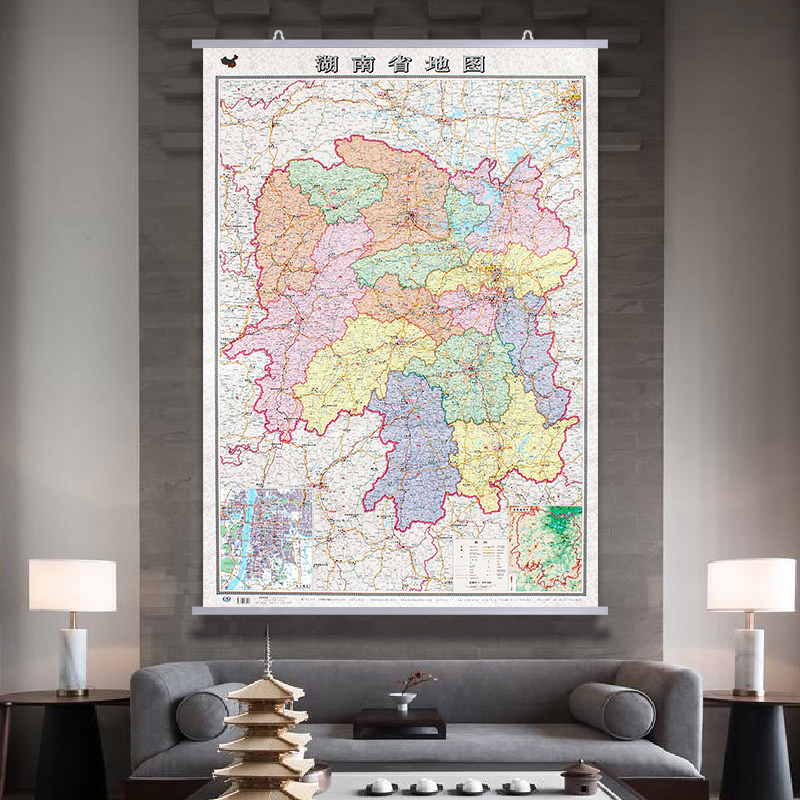 长沙常德衡阳地图 行政交通挂画大尺寸1.1x0.8米高清防水覆膜办公家用 湖南省地图挂图2024全新版 升级加厚中国地图2023年全新版