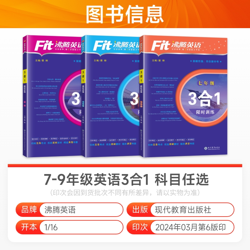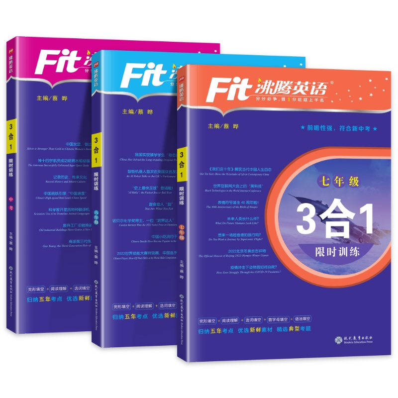 2025沸腾英语三合一限时训练七年级八年级中考九年级3合1组合训练初一初二初三初中英语中考阅读理解与完形填空短文填空专项练习册
