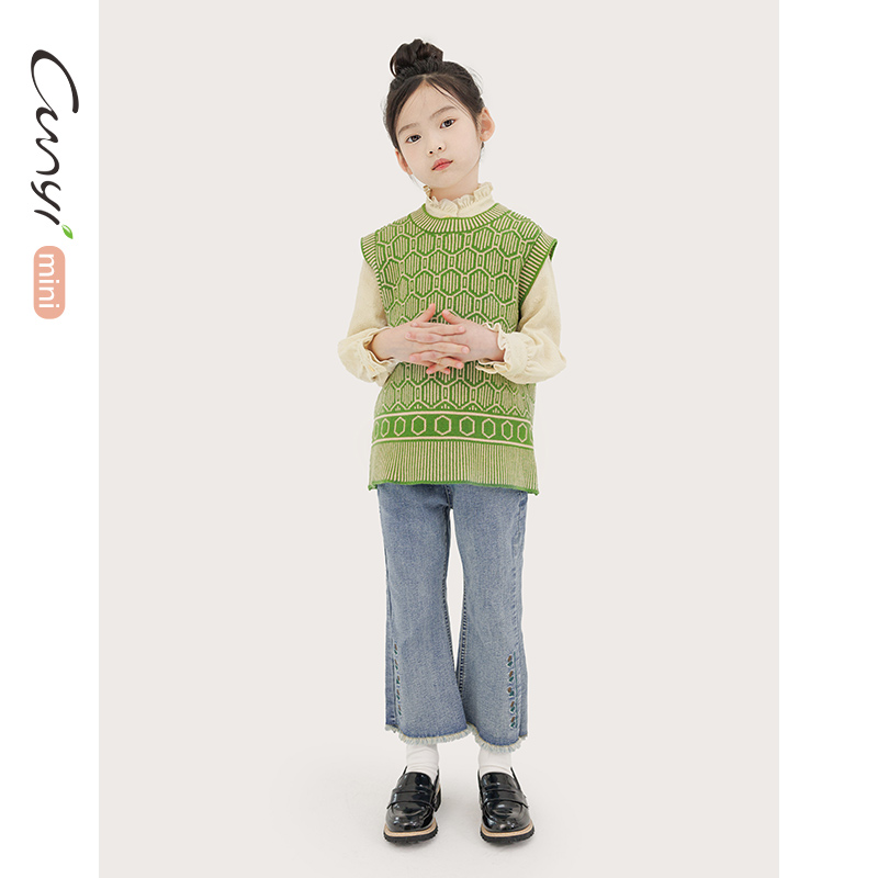 显瘦高腰宽松直筒阔腿裤 kt印花加绒糯米裤 窄版 2025新款 子女秋冬季