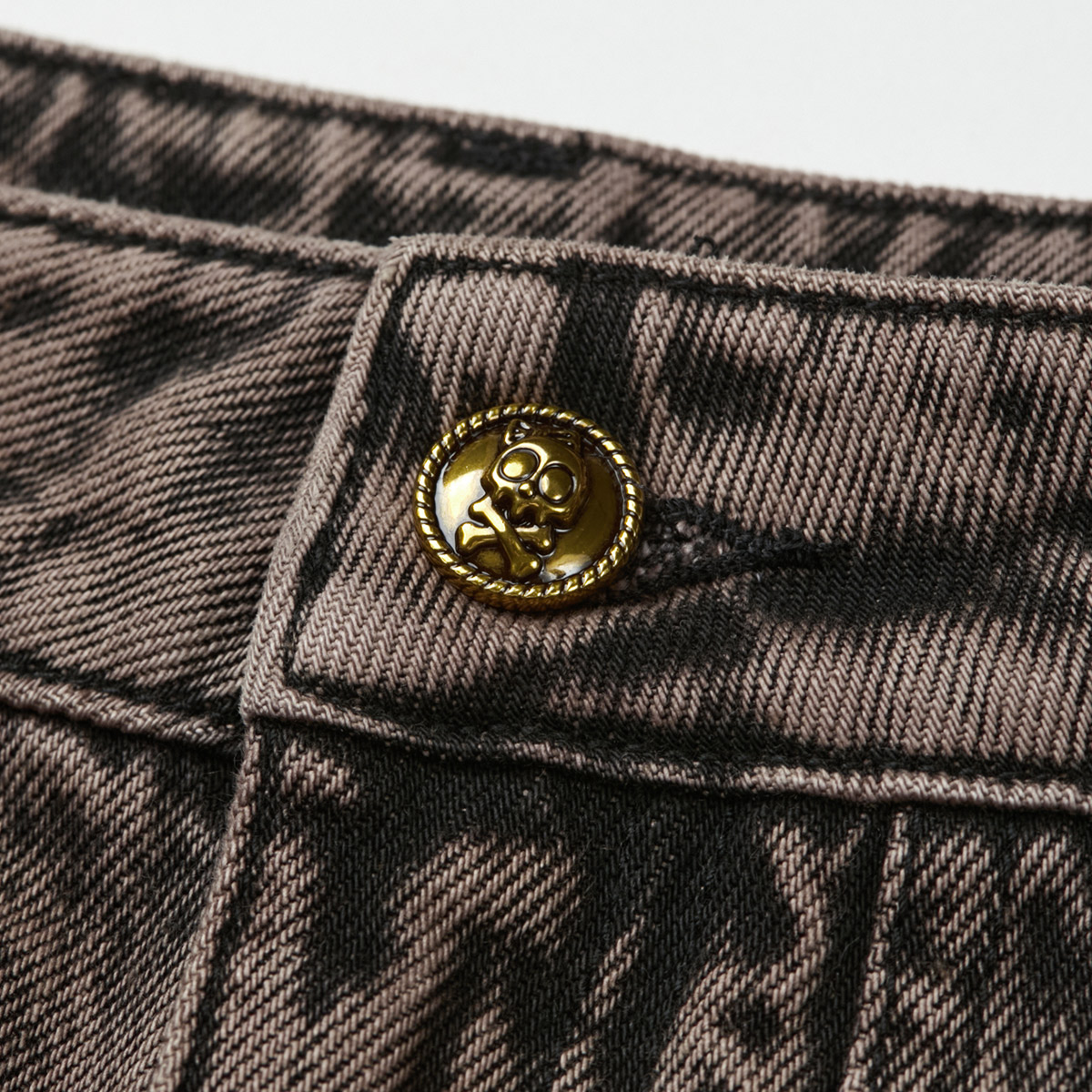 宽松直筒阔腿长裤 Kuvine秋季 男款 高街复古做旧泼墨水洗牛仔裤 美式