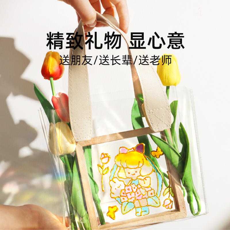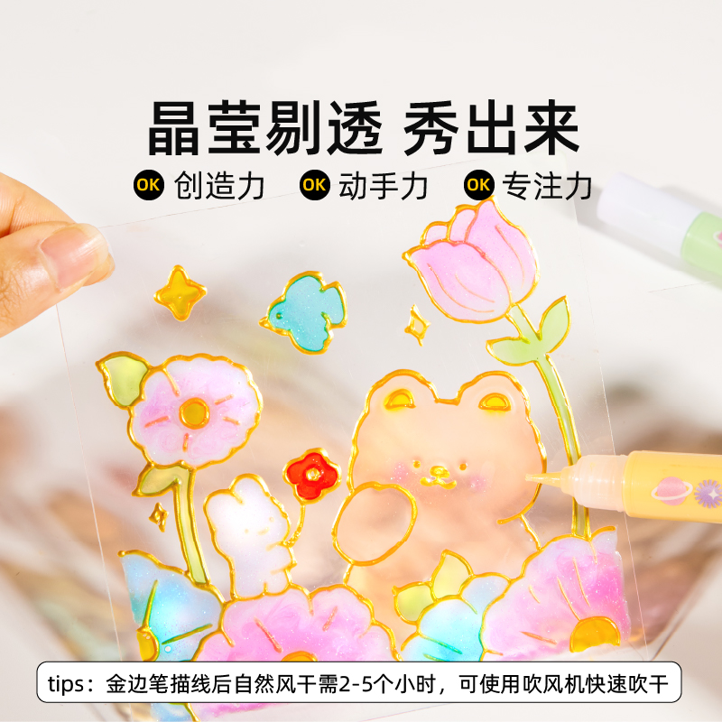 美乐童年儿童胶画免烤手工diy水晶玻璃画涂色画画填色冰冰胶玩具