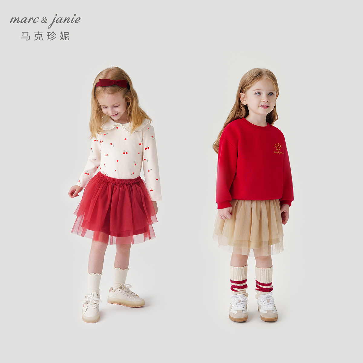 马克珍妮女童网纱短裙半身裙蛋糕裙儿童新年红裙子秋冬新款 241080
