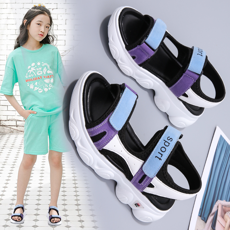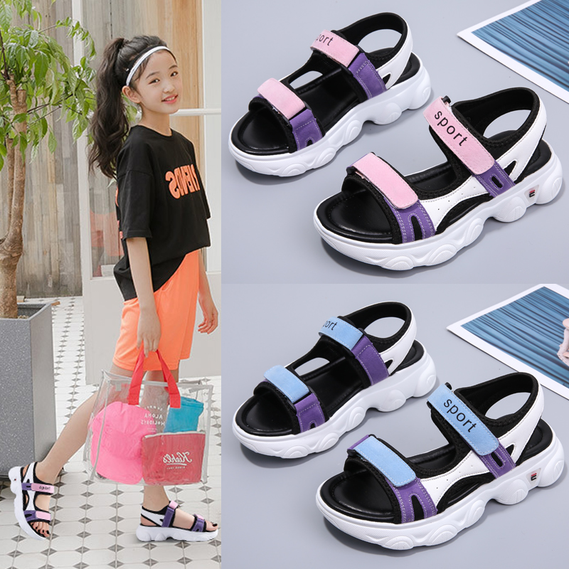 2023新款 时尚 爆款 夏款 百搭女孩网红真皮中大童沙滩 老爹鞋 女童凉鞋