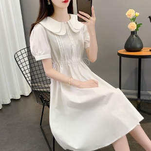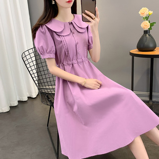 中长款 宽松大码 过膝休闲懒人裙 T恤女2024夏季 纯棉连衣裙孕妇短袖