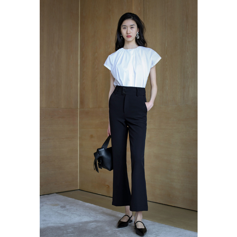 M23153 气质休闲裤 无有无印黑色高腰显瘦百搭微喇裤 九分裤