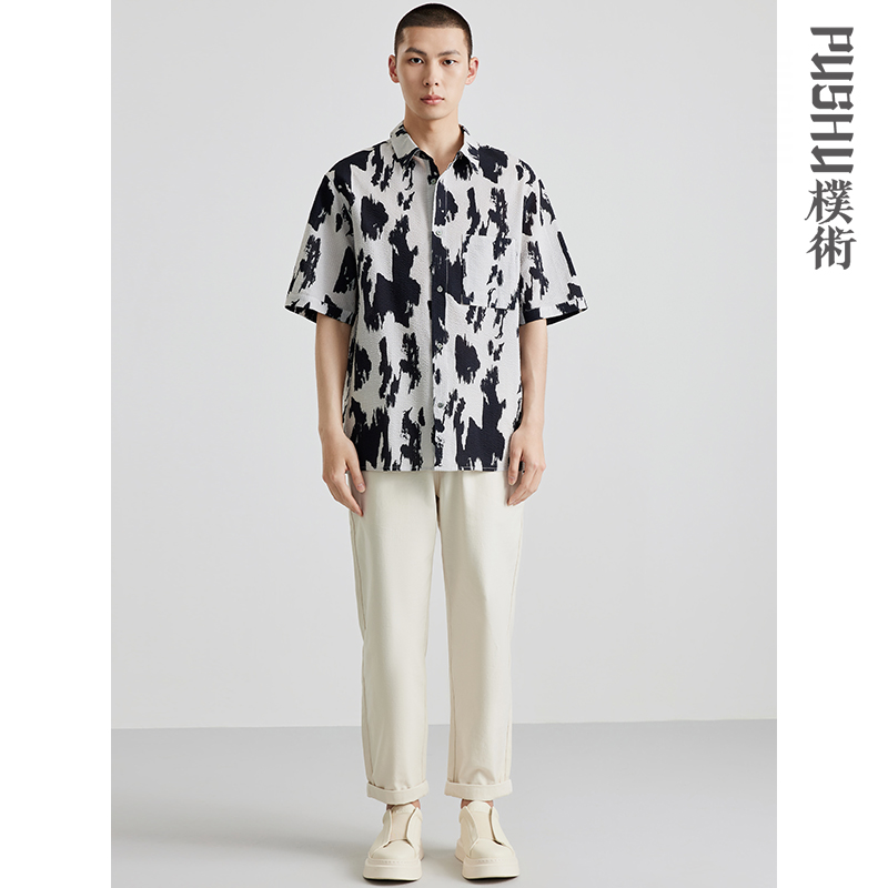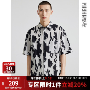 水墨国风设计感薄款 新品 工装 上衣纯棉休闲短袖 朴术男装 花衬衫 夏季