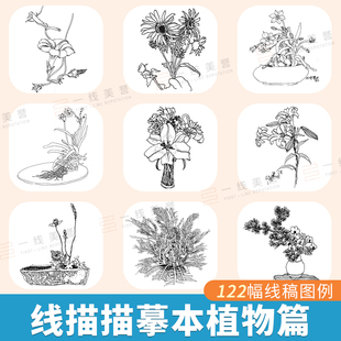 线描控笔训练线稿临摹画册本风景速写写生植物素材铅笔描摹本漫画人物绘画教程书简笔画素描美术儿童创意描红入门画画涂色手绘课件