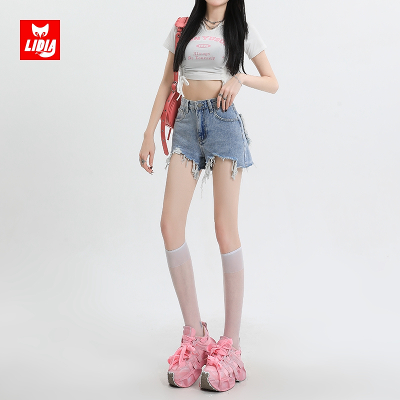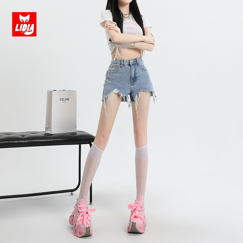 高腰a字显瘦直筒裤 黑色牛仔短裤 辣妹弹力修身 新款 子 女2025年夏季