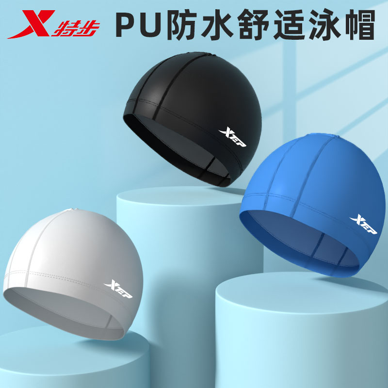 特步泳帽男款 不勒头防水pu专业加大头围成人长发专用布料游泳帽女