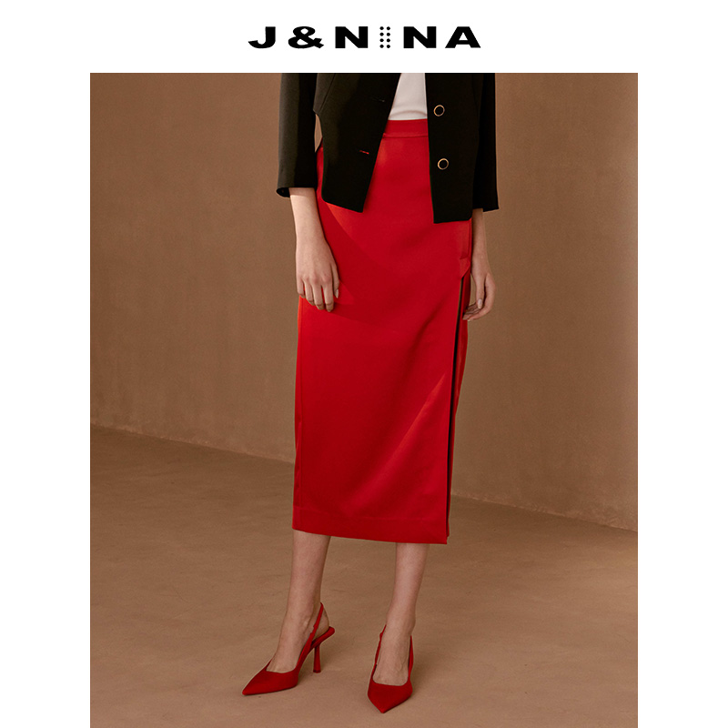 JNINA捷恩尼纳微开叉醋酸中长裙女优雅气质夏季 新款