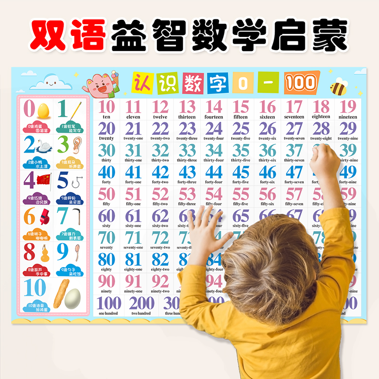 儿童学认0 1到100数字挂图墙贴学习神器幼儿园宝宝认识识数百数表