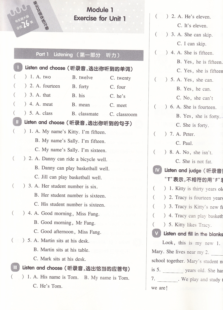 四年级第一学期 含答案 听力 阶段卷 全优26套 英语N版 上海沪教版 单元 4年级上 扫码 华东师大版 卷 小学教材同步配套测试卷 专项卷