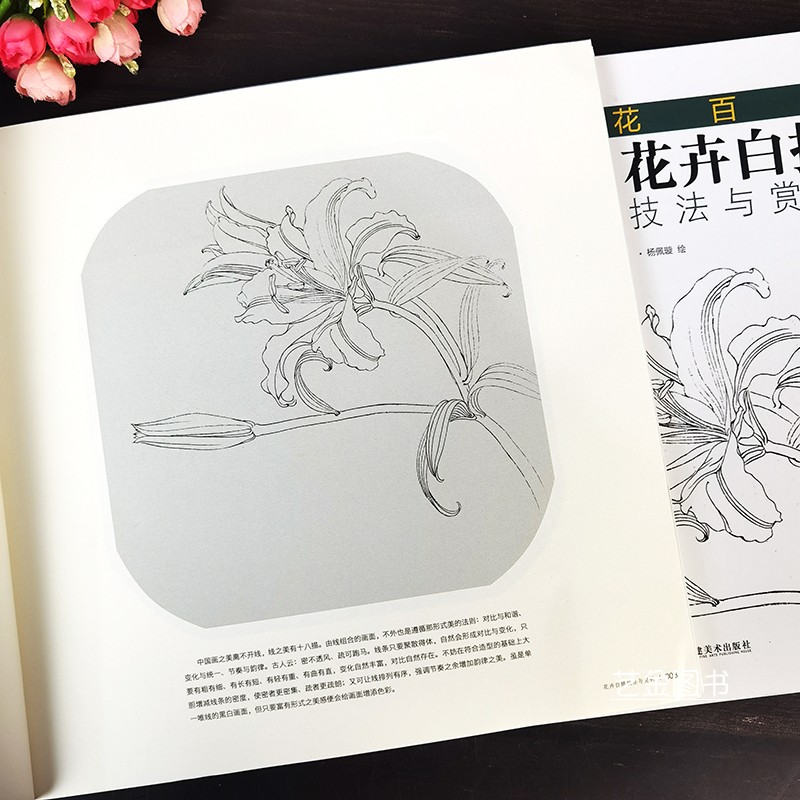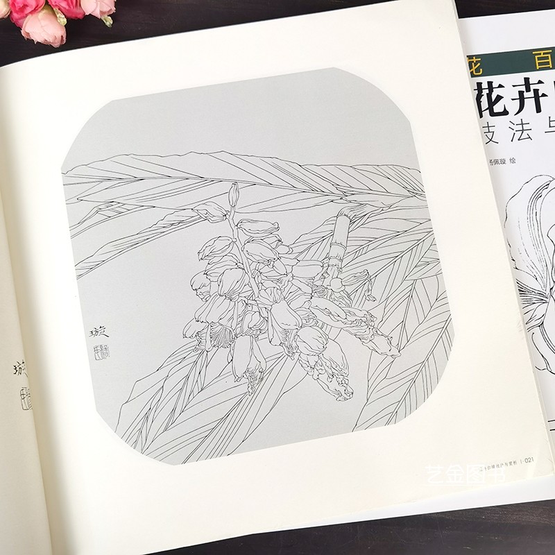 社 花卉画作品集福建美术出版 百花百扇花卉白描技法与赏析 杨佩璇绘白描花卉画作品集中国画艺术白描线描底稿百合荷花紫藤原大版