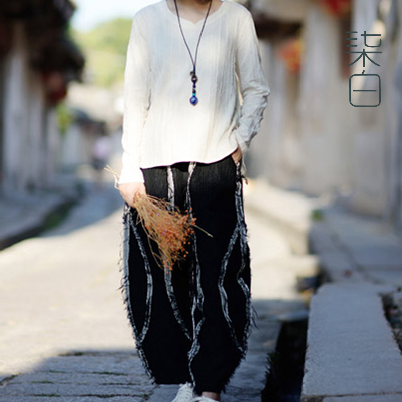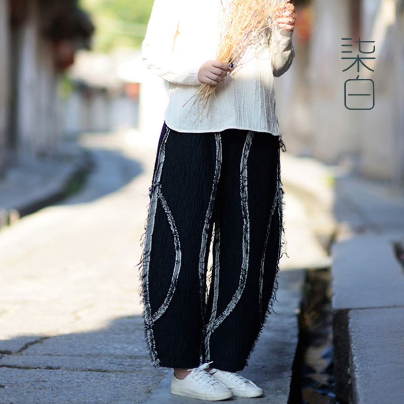 休闲灯笼裤 初春季 棉麻女裤 个性 款 时尚 毛边宽松阔腿九分裤 特价