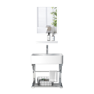 不锈钢挂墙式 洗手盆小户型卫生间浴室柜陶瓷一体洗脸盆台面洗漱台