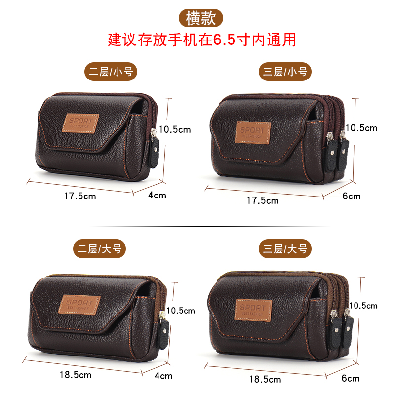 新款 牛皮手机腰包穿皮带手机套多功能真皮手机袋户外工地腰挂包