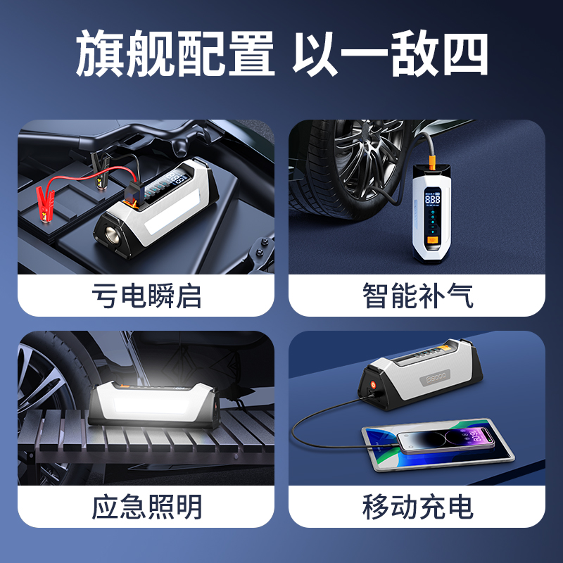 随途4合1无线应急启动充气泵三节电池高续航气泵打火一体储能电源