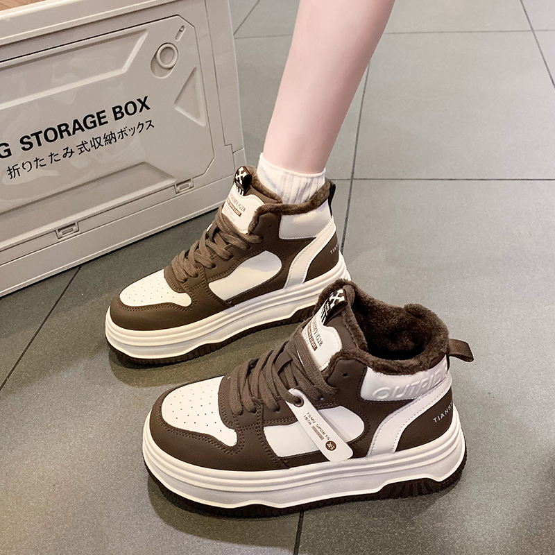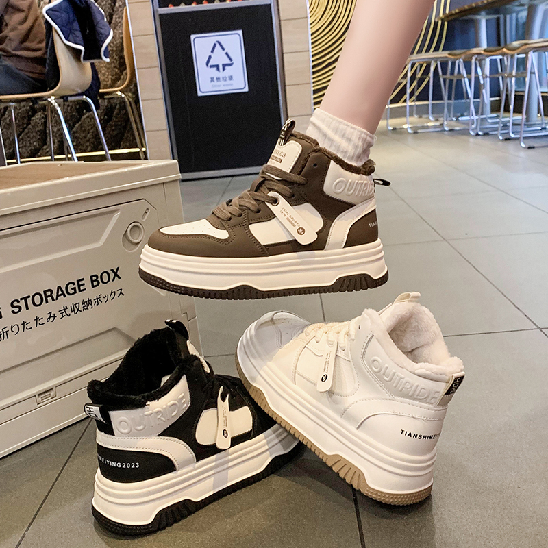 运动鞋 高帮休闲鞋 秋冬新款 子学生厚底男鞋 皮面鞋 征服鸿星尔克板鞋