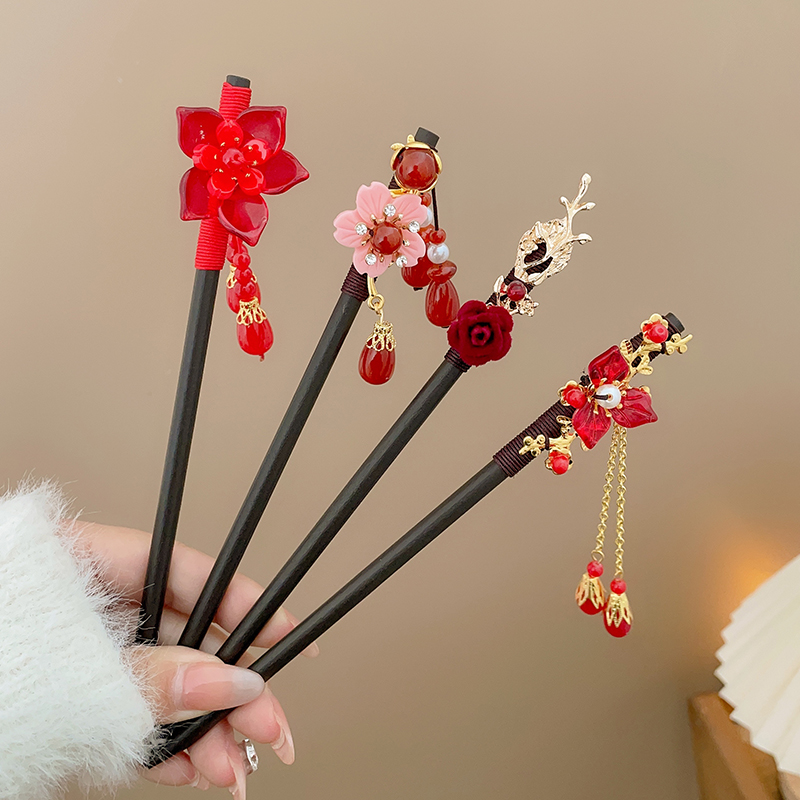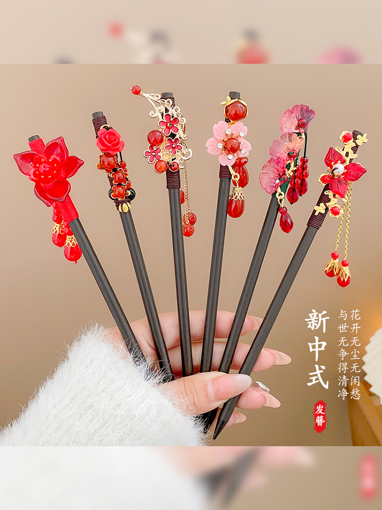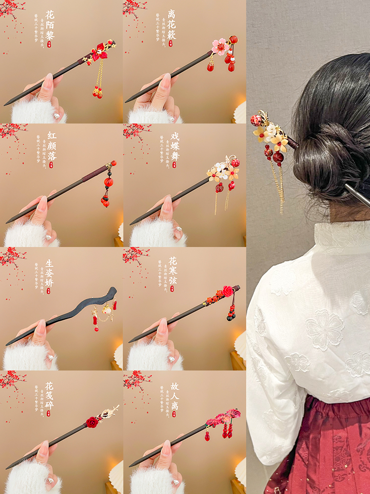 国风儿童马面裙发簪头饰女童汉服流苏发钗女孩高级感盘发簪子头饰