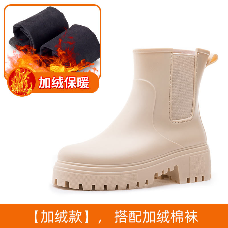 洗车厨房买菜胶鞋 外穿防滑舒适保暖水鞋 女款 网红厚底耐磨防水雨鞋