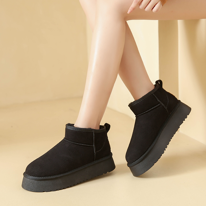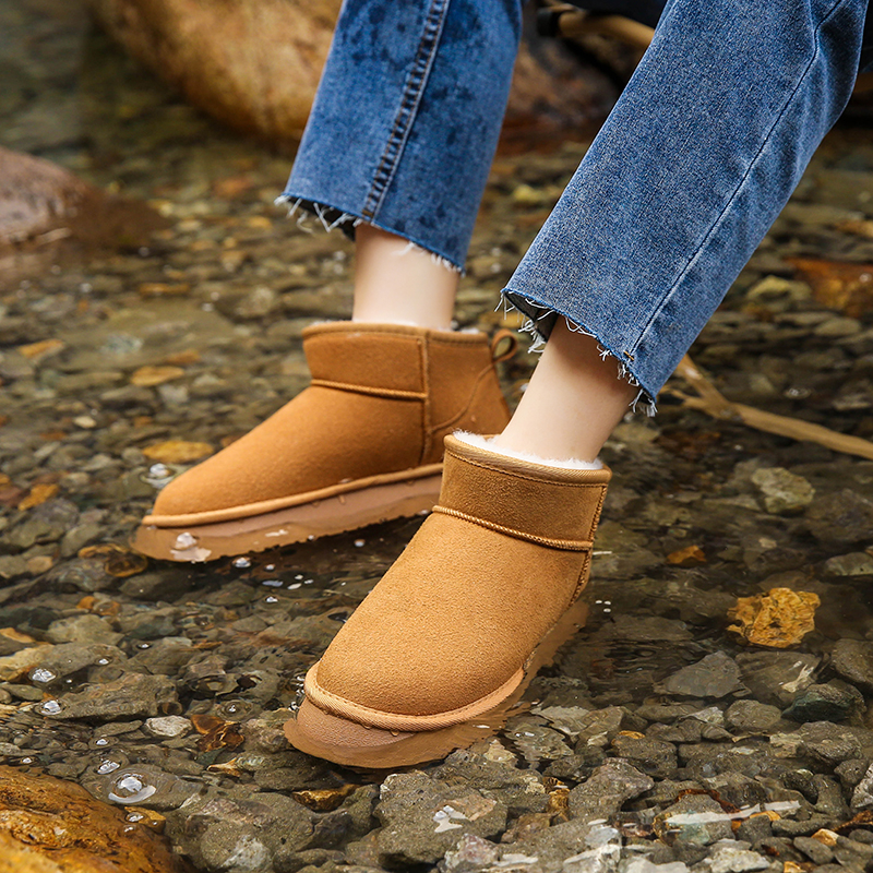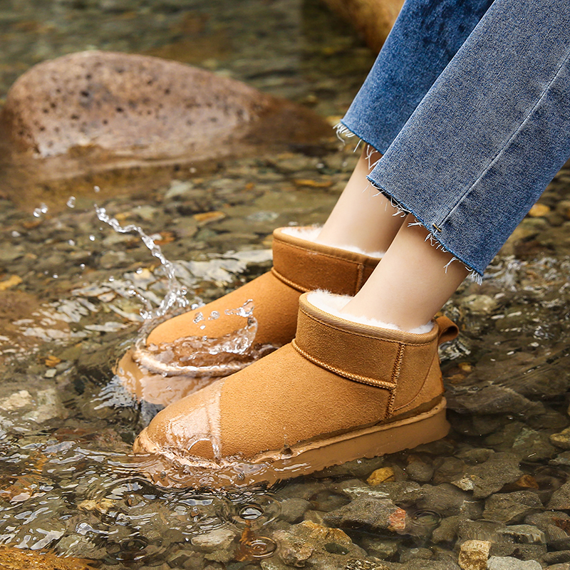 皮毛一体防水加绒加厚棉鞋 冬季 短靴子真皮 2025新款 厚底雪地靴女款