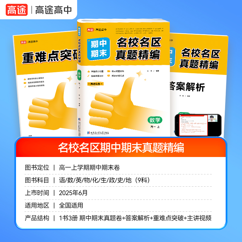 高途官方旗舰店2026版 高途优卷高中期中期末名校名区真题精编语文数学英语物理化学生真题汇编高一高二期末真题试卷各地期末卷精选