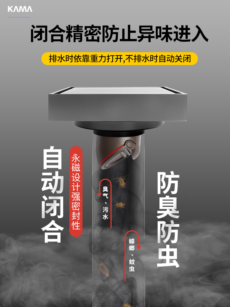 KAMA凯玛全铜隐形地漏家用淋浴浴室卫生间防臭防虫地漏