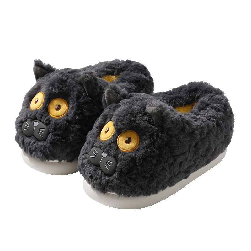 男冬 居家情侣包跟保暖防滑厚底室内毛绒棉鞋 可爱灰猫棉拖鞋 女冬季