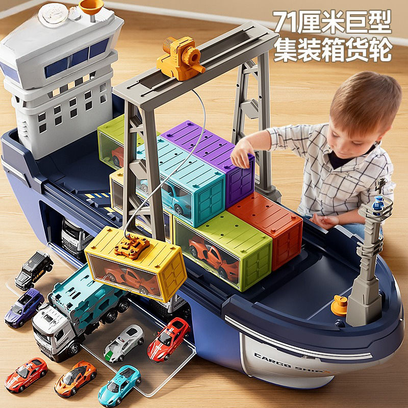 儿童玩具货轮游船集装 小汽车3一6岁男孩4生日礼物5宝宝 箱工程套装