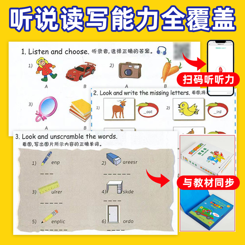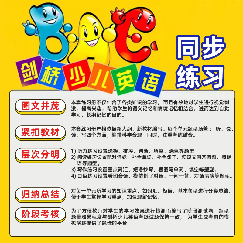 2026适用剑桥少儿英语同步练习预备级一二级AB版 同步课本英语启蒙26个字母发音初学英语读写专项训练幼儿小学生英语衔接教材练习册